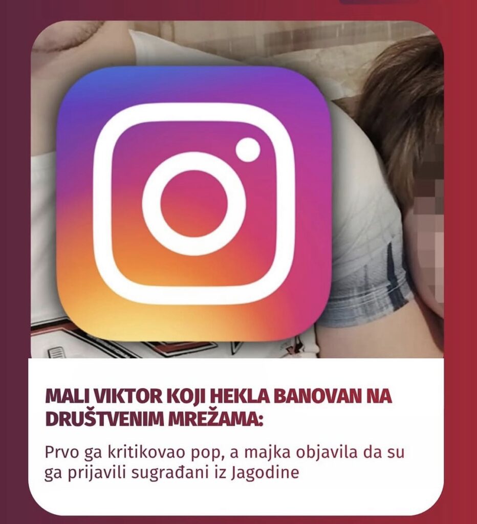 Viktor Mitic Cilj učenika petog razreda osnovne škole iz Jagodine bio je da isplete najduži ćilim na svetu. Svoj trud i rad redovno je objavljivao na društvenoj mreži Instagram, gde je pozivao ljude da ga zaprate, uz obećanje da će za svakog pratioca isplesti po jedan čvor u ćilimu.Vremenom je Viktor postao pravi hit na društvenim mrežama. O njemu su počeli da izveštavaju mediji i televizije, a stekao je i veliku podršku javnosti. Ipak, nisu svi reagovali pozitivno.Njegov hobi komentarisao je i sveštenik Stefan Rajičić putem društvenih mreža:„Srpska tradicija nisu dečaci koji heklaju, sa ‘Odri Hepbern’ kapicama, zlatnim kajlama i barbI frizurama! Stop stvaranju lažnih idola i uzora! Uzor nam mogu biti ona deca koja od najmanjih nogu cepaju drva, čuvaju krave i ovce, voze traktore, poste i pričešćuju se! Influenceri nikada! Nemojte nam nametati da je nešto natprosečno i uzorno kada nije!!! Još jedan marketinški trik, iza kojeg se nešto krije! U najmanju ruku rušenje ideala i razlike između muškaraca i žena! Brisanje srpske tradicije, takođe.“Ova izjava izazvala je veliku buru na društvenim mrežama. Mnogi su je protumačili kao poziv na napad na dečaka, nakon čega je usledio talas prijava njegovih naloga.Najpre mu je ugašen jedan Instagram profil, a zatim i drugi koji je otvorio, i na kojem je nastavio da deli svoj rad.Tim povodom oglasila se i njegova majka, Violeta Mitić:„Pošto ste ugasili i drugi Instagram nalog mom sinu Viktoru, ovaj ćilim što treba da ishekla neće moći jer ste vi krivi za to! Važno obaveštenje. Najviše su ga prijavljivali ljudi iz njegovog rodnog grada Jagodine, bravo ljudi,